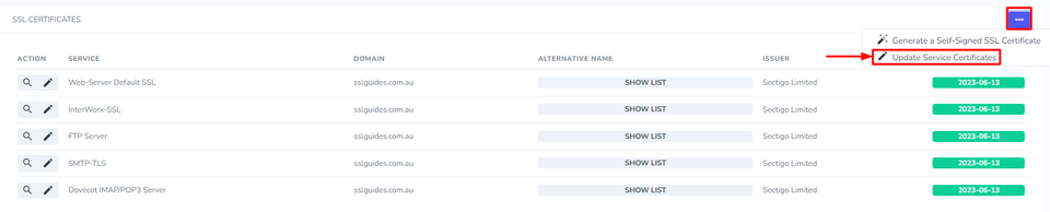 4: Click on the icon on the top right and select the Update Certificate Services option